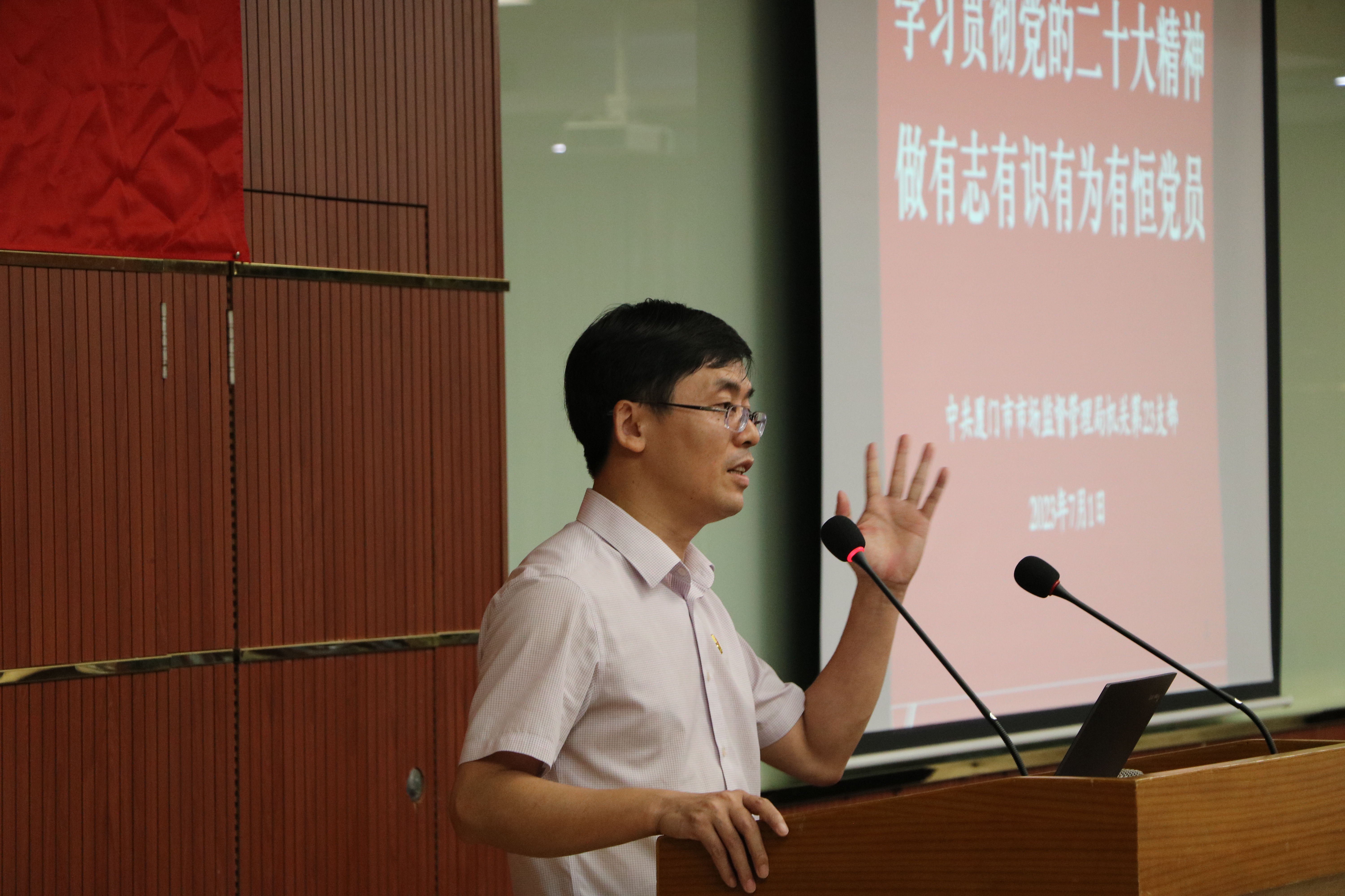 在這次聯(lián)建共建中,中共廈門市市場監(jiān)督管理局機(jī)關(guān)第二十三支部何清杭書記帶來了一堂《學(xué)習(xí)貫徹黨的二十大精神,做有志有識(shí)有為有恒黨員》的主題黨課。授課前,何書記作為領(lǐng)誓員,脫稿帶領(lǐng)大家一起重溫入黨誓詞,全體黨員面對(duì)鮮紅的黨旗,莊嚴(yán)地舉起右拳,鏗鏘有力、擲地有聲地宣讀誓詞。