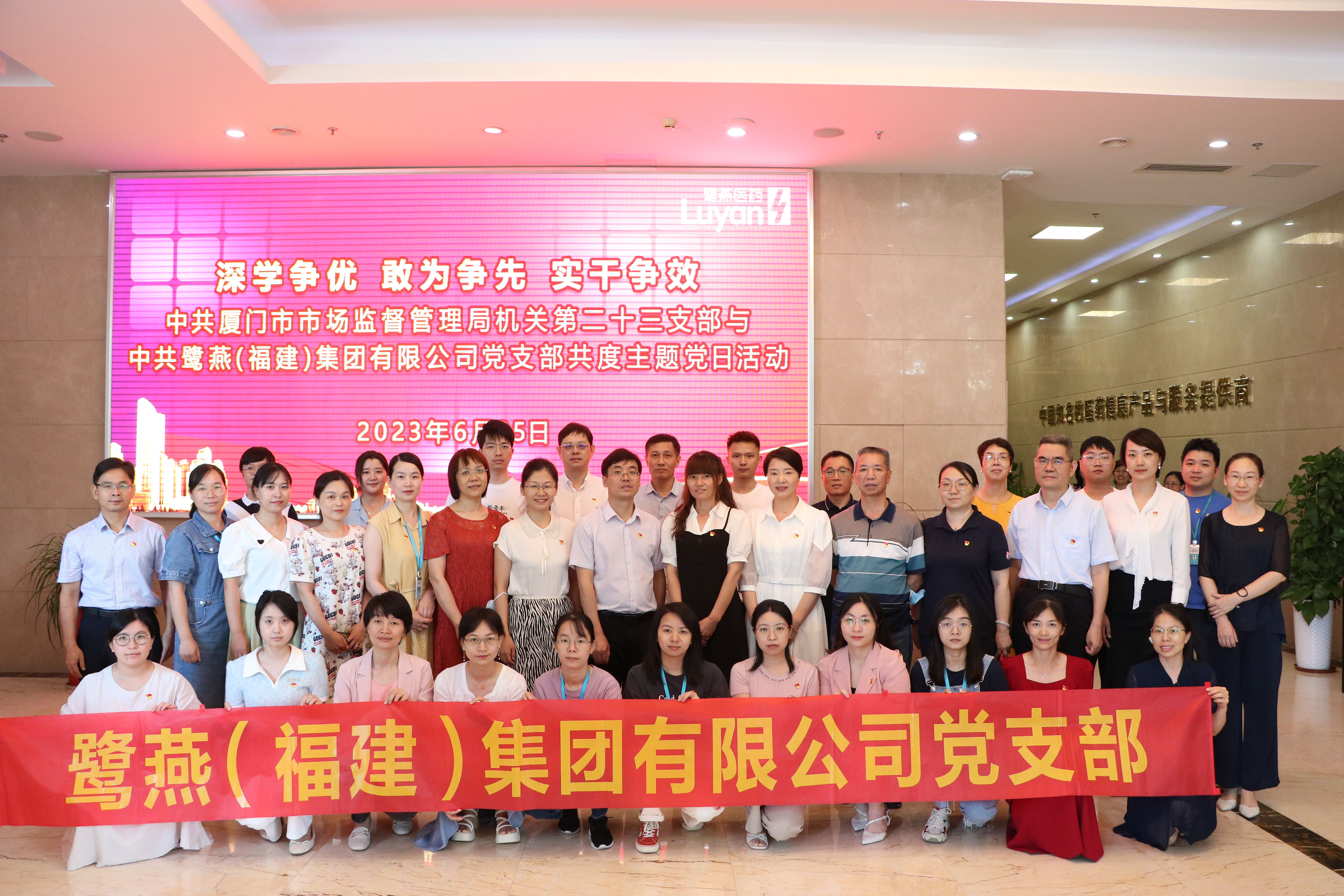 為深入學(xué)習(xí)貫徹黨的二十大精神,慶祝中國共產(chǎn)黨成立102周年,充分發(fā)揮黨建工作對(duì)企業(yè)經(jīng)營管理的引領(lǐng)力,鷺燕(福建)集團(tuán)有限公司黨支部積極主動(dòng)對(duì)接監(jiān)管部門基層黨支部,與中共廈門市市場監(jiān)督管理局機(jī)關(guān)第二十三支部共同開展主題黨日活動(dòng)。2023 年6月25日, 活動(dòng)在鷺燕總部大廈如期舉行,中共廈門市市場監(jiān)督管理局機(jī)關(guān)第二十三支部全體黨員、鷺燕(福建)集團(tuán)有限公司黨支部黨員以及鷺燕集團(tuán)廈門區(qū)域部分成員公司總經(jīng)理、質(zhì)管干部參加了活動(dòng)。