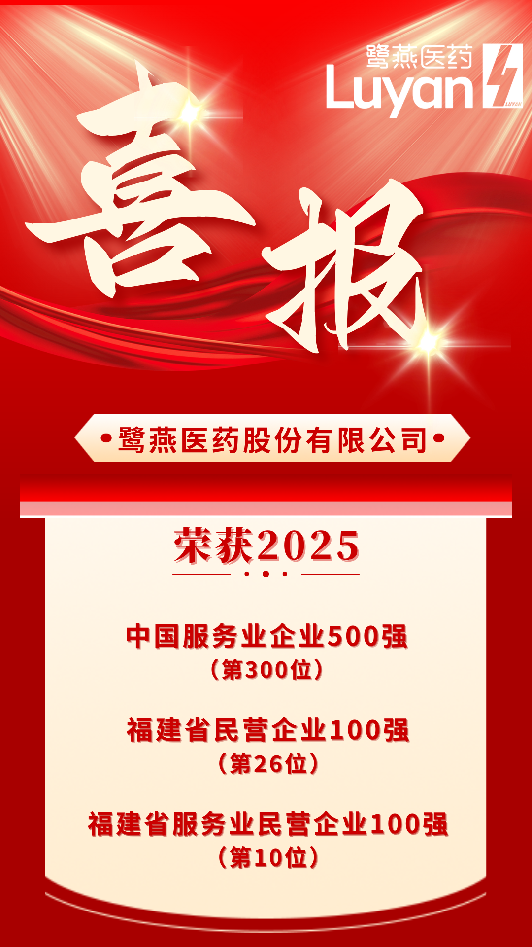 9月18日,中國企業(yè)聯(lián)合會、中國企業(yè)家協(xié)會在2025現(xiàn)代服務(wù)業(yè)高質(zhì)量發(fā)展大會上,發(fā)布了“2025中國服務(wù)業(yè)企業(yè)500強”,鷺燕醫(yī)藥憑借穩(wěn)健的發(fā)展態(tài)勢與卓越的服務(wù)能力入圍,位列第300位,連續(xù)12年蟬聯(lián)該榜單。