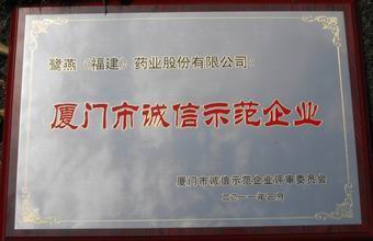 “2008 —2009年度廈門(mén)誠(chéng)信示范企業(yè)”是廈門(mén)首個(gè)誠(chéng)信企業(yè)評(píng)選活動(dòng)。本活動(dòng)由廈門(mén)市誠(chéng)信促進(jìn)會(huì)、廈門(mén)市企業(yè)和企業(yè)家聯(lián)合會(huì)、各級(jí)政府機(jī)關(guān)等28個(gè)相關(guān)部門(mén)聯(lián)合開(kāi)展,組委會(huì)本著“公開(kāi)、公正、公平”的原則首次在全市范圍內(nèi)共同開(kāi)展誠(chéng)信示范企業(yè)的評(píng)選。經(jīng)過(guò)一系列激烈的競(jìng)爭(zhēng)及組委會(huì)的嚴(yán)格評(píng)選,本企業(yè)最終獲得了 “2008—2009年度廈門(mén)市誠(chéng)信示范企業(yè)”的榮譽(yù)稱號(hào)。