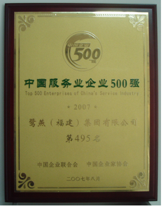 鷺燕集團(tuán)近日捷報(bào)頻傳,在剛剛榮獲了“2007廈門(mén)企業(yè)100強(qiáng)”之后,再次躋身于“中國(guó)服務(wù)企業(yè)500強(qiáng)”之列。我集團(tuán)已連續(xù)兩年獲此殊榮。